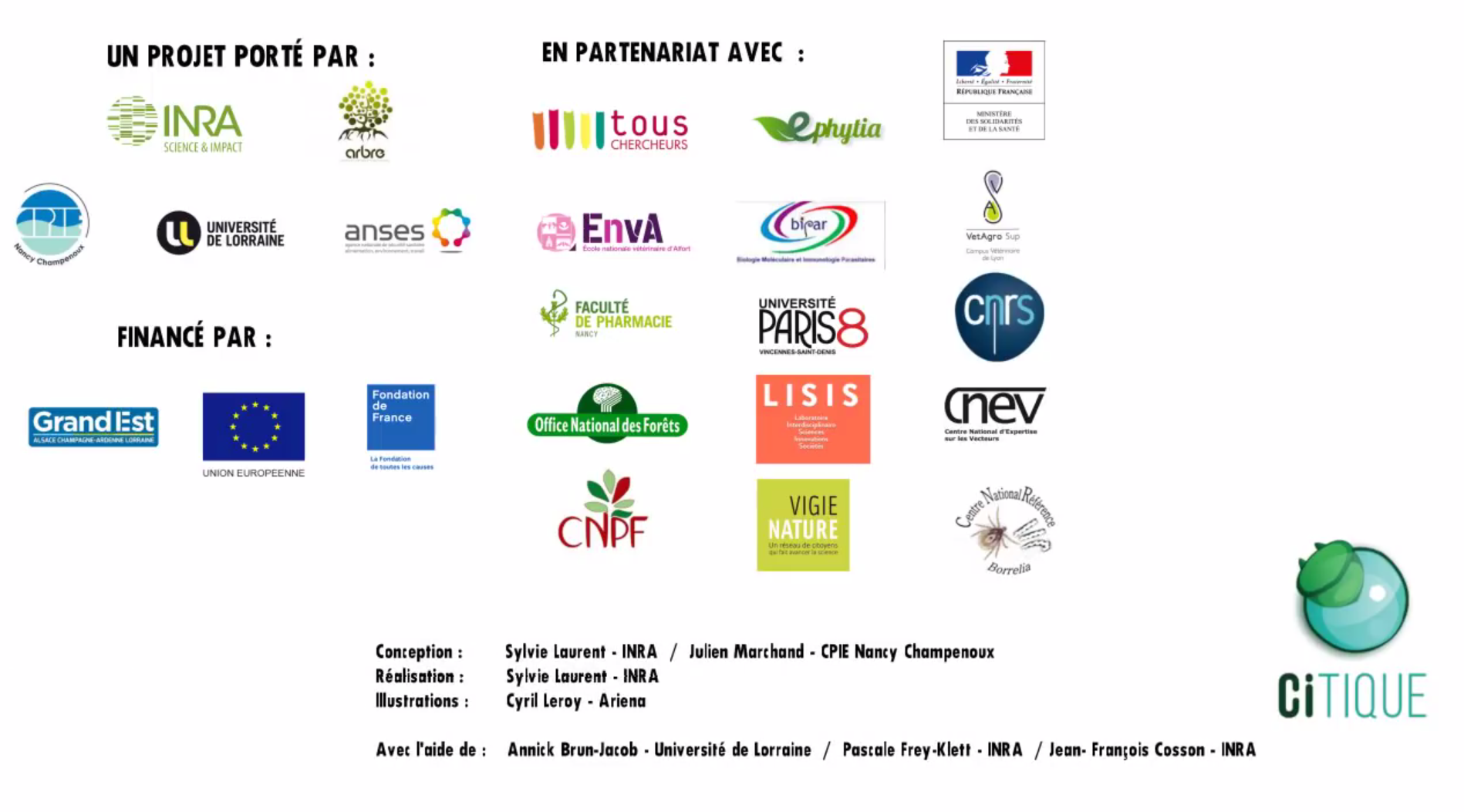 CiTique est un projet de recherche scientifique sur les questions de santé liées aux tiques. C’est aussi un projet citoyen car le programme s’appuie sur la participation des citoyennes et citoyens pour collecter des données. En d’autres termes, c’est un projet de sciences participatives.