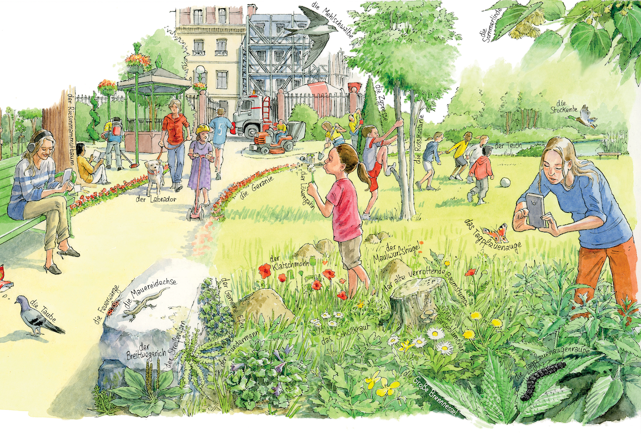 Crédits photos – couverture du cahier : coquelicot, lézard (Johannes Dill), pied (Mathieu Hilaire) abeille, mûre, ortie, pissenlit, punaise arlequin (Lisa Käuffert)